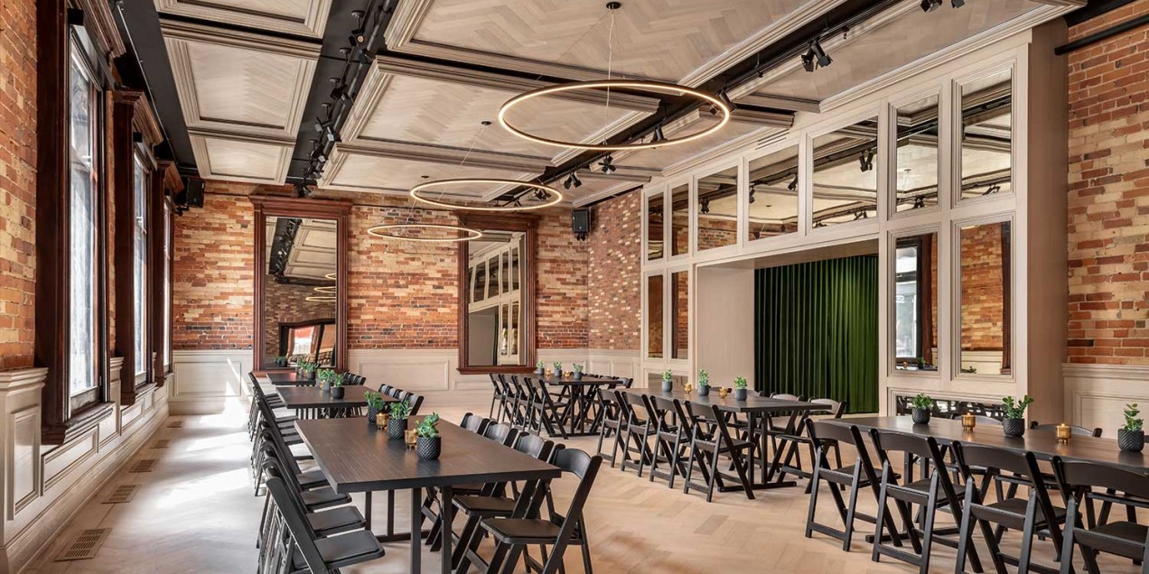Built in 1889 and steeped in history, this landmark property features traditional light hardwood floors, restored exposed brick walls and locally curated art throughout the building. In contrast, unique and innovative lighting applications which transition throughout the day, add a touch of modern flare and bring the building to life.