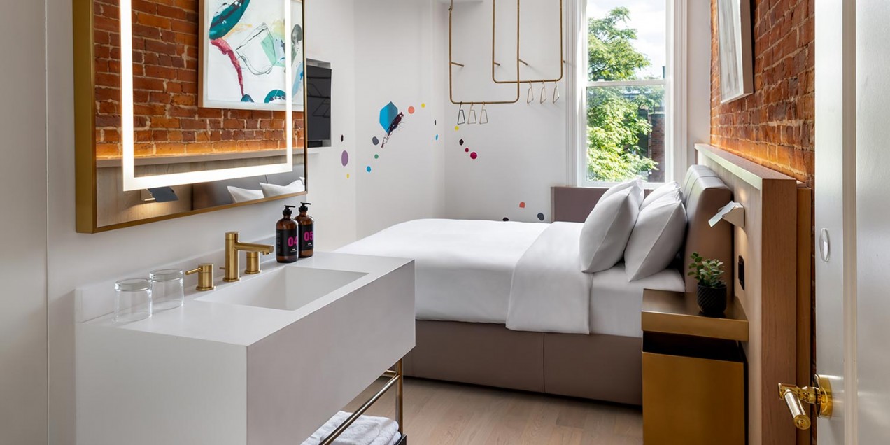 Originally built in 1889, Gladstone Hotel has long been a retreat for artists and other creatives (many used to stay there after performances at the nearby Massey Hall). It has recently been renovated and their newly reimagined guestrooms feature light hardwood floors, neutral accents, and exposed brick walls.