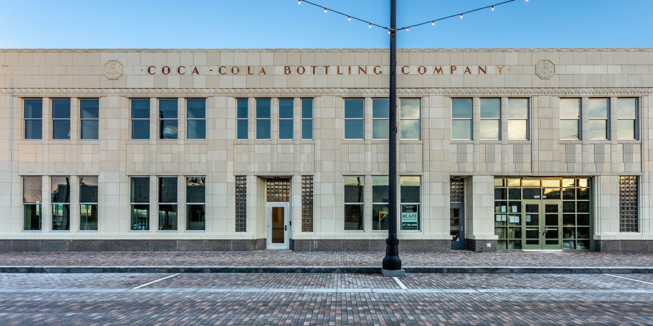 Perched on an 11-acre site at the east end of Indianapolis’ historic Massachusetts Avenue, the former Coca-Cola bottling factory is an Art Deco showpiece. Faced with thousands of white terra cotta tiles and accented with hand-lettering glinting with gold leaf, the exterior design carries through to intricate balustrades, glazed tile mosaics, and vaulted ceilings found throughout the main building and garages.