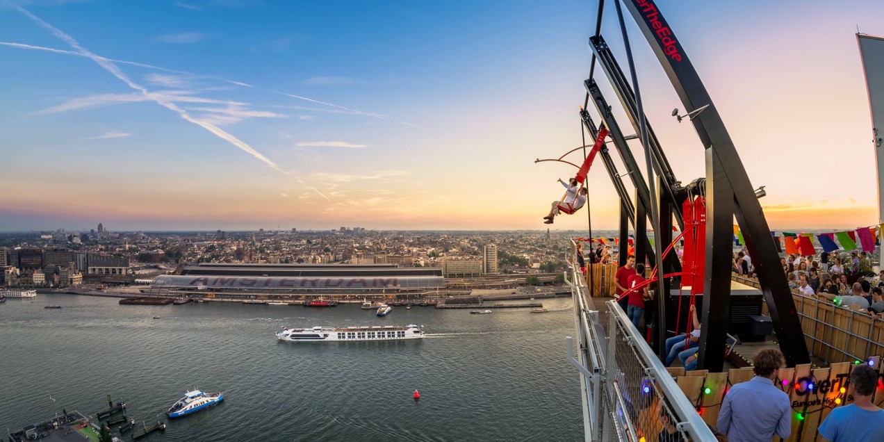 ‘Over the Edge’ is Europe’s highest swing on our sky deck. Daredevils and thrill seekers will swing 100 meters above the ground, back and forth over the edge of the tower with Amsterdam below their feet. Enjoy the unrivalled view over our capital city, while the adrenaline flows through your body.