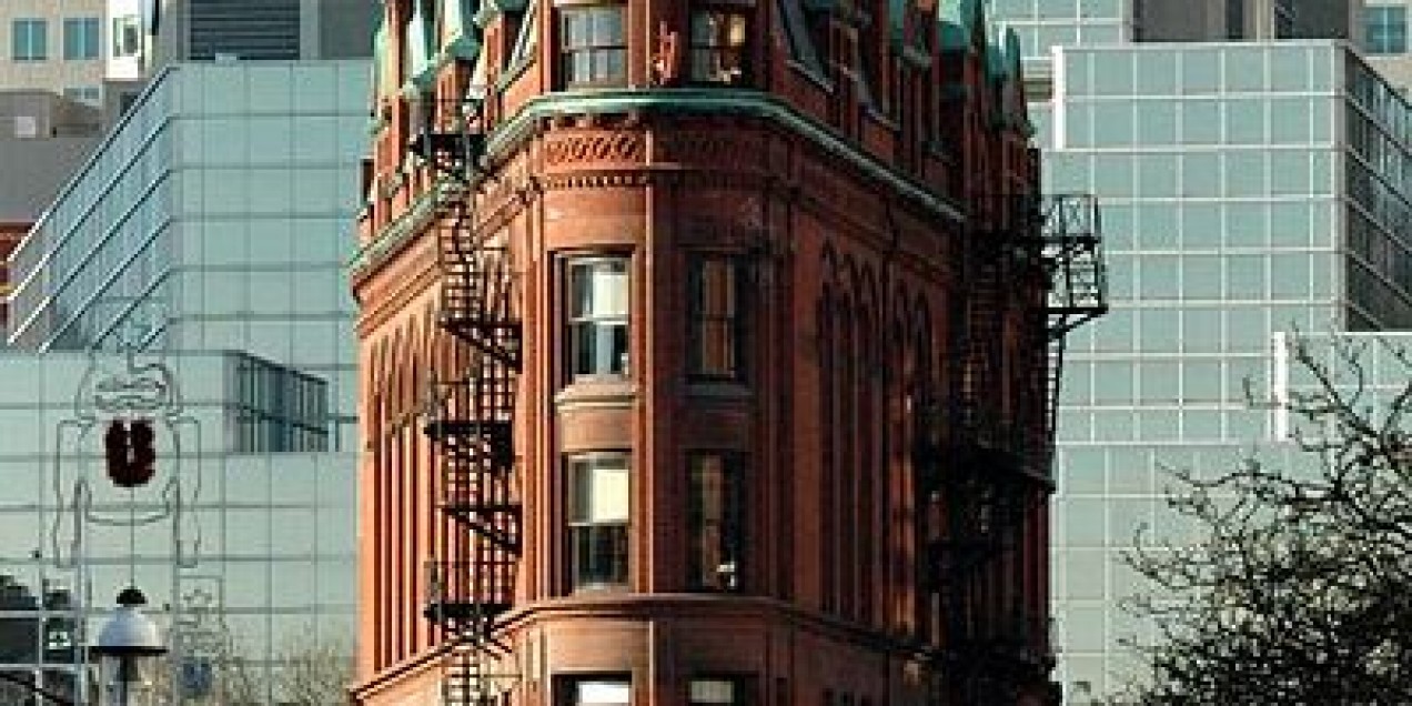 Many people assume that the Gooderham Building is a copy of the better-known and larger Flatiron Building in New York City, but in fact it predates the latter by some ten years. A designated Heritage property, the Gooderham Building is still used for office space, complete with a pub in the basement.