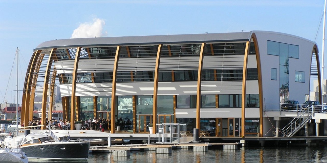 Loetje aan ‘t IJ is located at the top of the Amsterdam Marina port building, in Amsterdam North. This marina is situated in one of the most dynamic cultural hotspots of the North: the NDSM wharf. There is a lovely deck terrace around this striking property, with jetties for guests who come to Loetje by boat.
